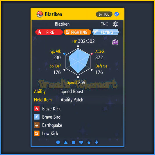 • 6IV Blaziken Unrivaled - Mightiest Mark - Raid Caught - Battle Ready + EVs